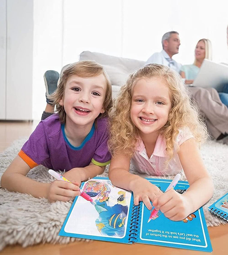 • Reusable: Simply fill the pen with water and draw on the pages – the colors appear and fade as the water dries, allowing endless use.